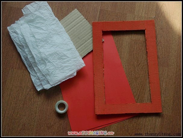 2.说干就干,上班没事的时候,我跑仓库里找了些长方形的废纸板,每块纸板中间挖出了长方形的大窟窿。(窟窿越大越好,糊上透明的白纸,贴上唱唱剪的花,应该不错)