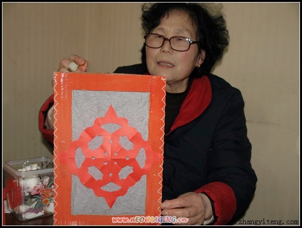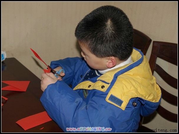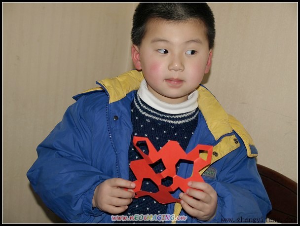 4.做宣传的小姑娘主动给了我一些红纸,正好给唱唱剪花。