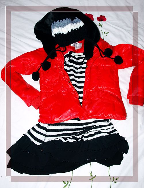 装嫩的一身:上星期天,多多同学去参加歌唱比赛决赛,我就是这么穿的,红色喜气给他加油。还有他那么多同事啊领导啊,众多家属啊,穿这身很醒目,撑他的面子,对了,我和唱唱还上台给多多同学献花献吻,嘎嘎!!!本来是准备过年穿的,为了支持他,提前暴露了。