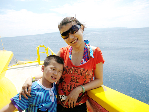 在巴厘岛的第三日,自费项目,乘坐爱情号游轮去蓝梦岛水域。我们坐的是最大的那艘船,95美金一人,小孩50美金。别的游轮是85美金一人,团队应该有打折,我们没便宜,打折的钱导游赚了。