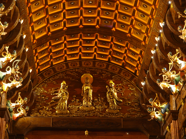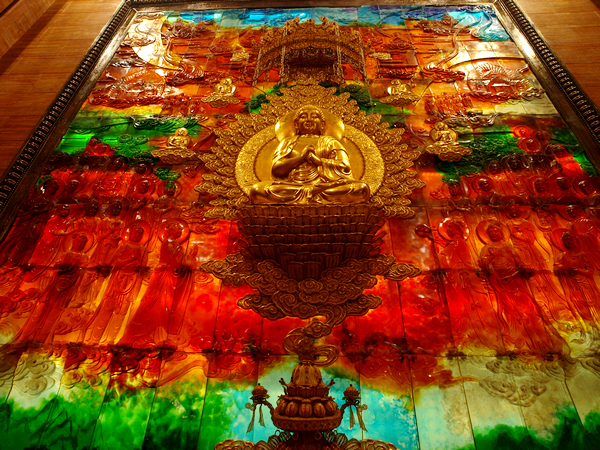 极尽奢华的梵宫,所有的木料都是上等的楠木红木等,纯金法器,巧夺天工的雕刻,定制的五彩琉璃。。。。。唱爸说,比皇宫还奢华,厕所门都是楠木的,随处可见的精湛雕工,让唱爸是看一路赞叹一路。。。。。。