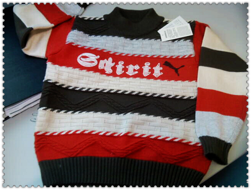 彩条棉线毛衣 厚 65元 地点:环北 还在这家买了两条丝光羊毛裤(唱唱穿的)
