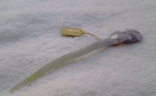 好喜欢这个翡翠簪子,花是紫罗兰色,杆子有绿色,也有黄色,古典。。。。