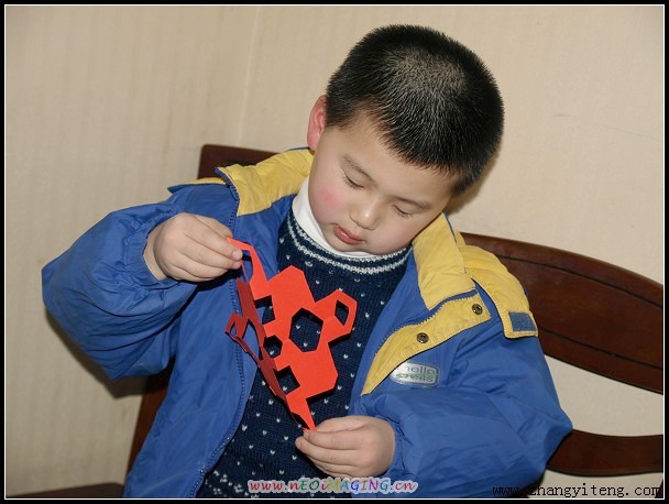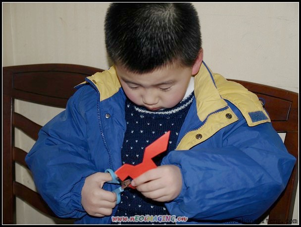 4.做宣传的小姑娘主动给了我一些红纸,正好给唱唱剪花。