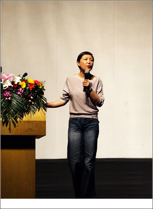 王树老师一开讲,我有一个很明显的感觉,就是——柔软!王老师比我前几年见到得时候更加柔软、柔和,不单单是指她的语言,而是她整体给我的感觉。我也奇怪,为何在我脑海里冒出来的不是“温柔”这个词,而是“柔软”!她站在那里,就是一个发光体,那样的光芒不会刺眼,是一团温暖令你不由想去拥抱。王树老师上台的时候,与主持的穆(还是木?)老师拥抱了一下,我听见周围的骚动,有人“哎呦”以示诧异。而我的眼竟然湿润了。。。。。。开场前几分钟我才发现王老师坐在第一排,想过去问候已经来不及了,于是就想要抓个机会跟王老师拥抱下。呵呵,果然,机会来了,王老师请人上去协助表演时,我积极的举手上了台。有点紧张有点激动,感觉自己的面部肌肉都不受控制,哈哈!过了一会才平静下来。下台的时候,王老师握手谢谢我们,我很直接的说:“不够”,上前抱住了她,也!成功!王老师看着我的眼睛说:“很高兴在这里见到你!”我知道,她知道我想说的一切!