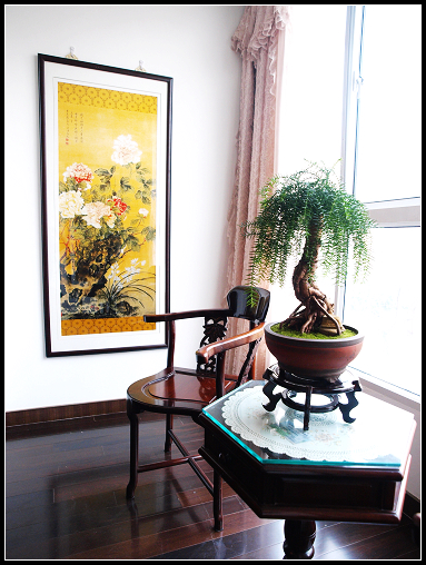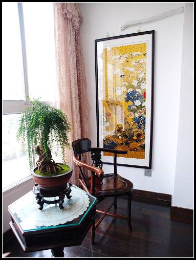 下面这两幅图是拿我的两条丝巾裱的 在环北那个我买衣服的定点店买的 当时老板娘提了下说裱出来送人很好 我真的拿去裱了 真丝的东西很不好裱 但是裱出来效果相当不错 老板娘听我说裱出来很好看 赶紧把还剩的两条自己收了起来不卖了自己留着