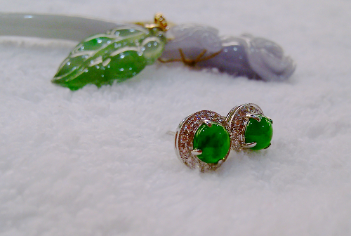 漂亮的耳环,老坑绿色翡翠料做的,老许以前的货了,仅此一对,这耳环绝对可以戴到100岁,哈哈哈