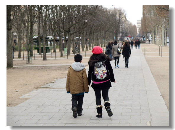 后面看,我可真娇小啊,这不就是姐弟俩嘛