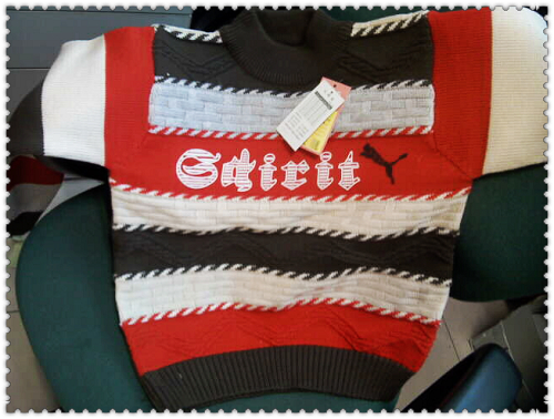 彩条棉线毛衣 厚 65元 地点:环北 还在这家买了两条丝光羊毛裤(唱唱穿的)